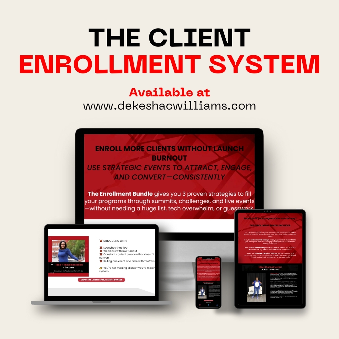DeKesha Williams, the Award-Winning Business Strategist, Professional Speaker, and revered as the Webinar Queen, holds the esteemed position of CEO at Vizions Enterprise. Vizions Enterprise, a leading force in the industry, specializes in empowering clients through groundbreaking lead and revenue generation development.